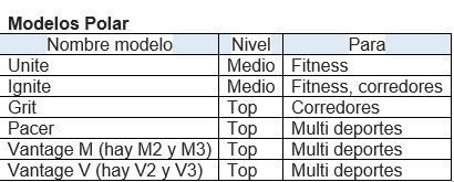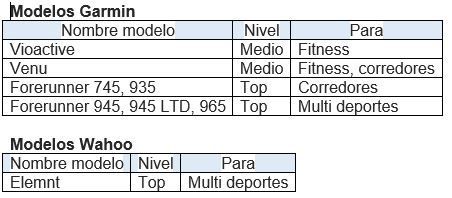 De las 4 marcas mencionadas, las de más venta son Polar, Garmin, Wahoo, por eso vamos a mencionar solo estas 3 marcas.